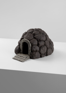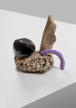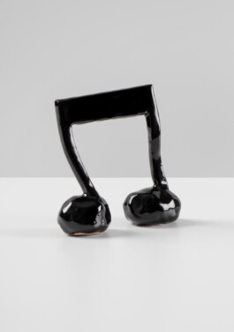 Asphalt, glazed ceramic,
